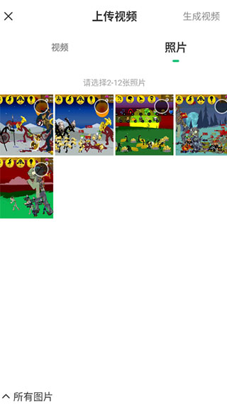 3、选择合适的素材,可以用照片或者视频来制作,然后点击生成视频。