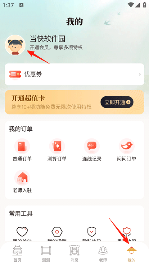 7、在测测功能页系统提供了众多生活情感工具,等你来体验;