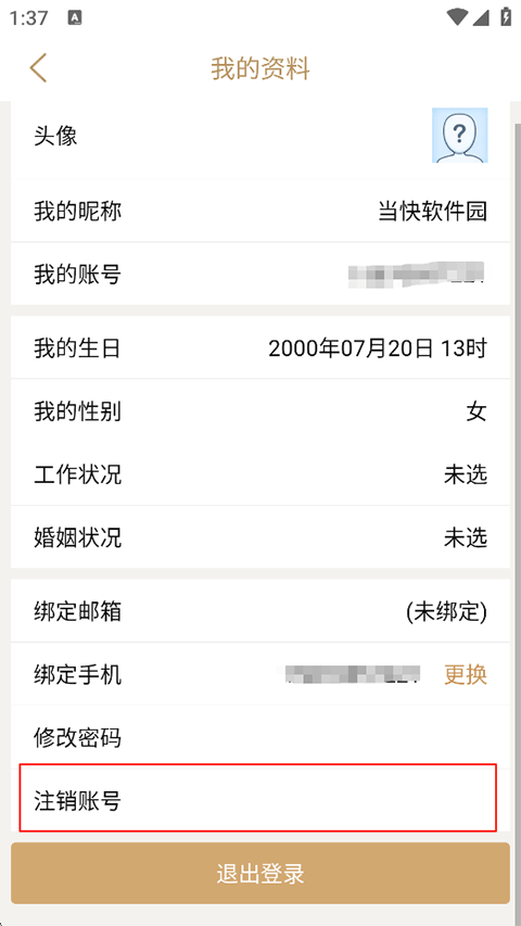 10、找到并点击注销账号功能;