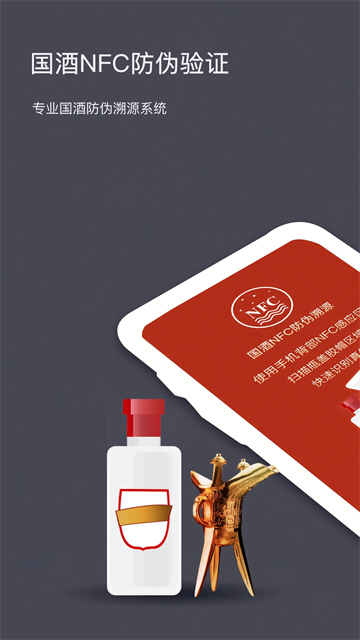 国酒NFC防伪溯源最新版是一款国内领先的专业级别的国酒防伪溯源软件,是能够帮助你有效鉴别真伪的软件,支持物流码、批次吗、生产日期等,让你可以使用它获得精准的检测报告,无论你是普通的消费者还是专业的从业人员,都可以使用它来帮助你精准的鉴别,并获得详细的溯源。软件的所有功能都是免费的,操作起来也十分便捷,需要它的伙伴们,不妨来这里下载国酒NFC防伪溯源最新版试试吧。