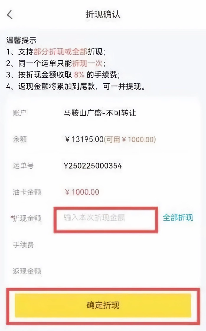 告别油卡用不完,则一速达App推出「油卡金额一键折现」功能,加油还是折现,您说了算!无需繁琐流程,轻松将闲置油卡金额折现成现金,直接合并到尾款中提现!