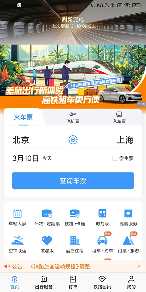 列车晚点、临时停运、车厢变更、站台调整等动态信息实时同步,系统第一时间推送通知,避免误车或长时间候车。