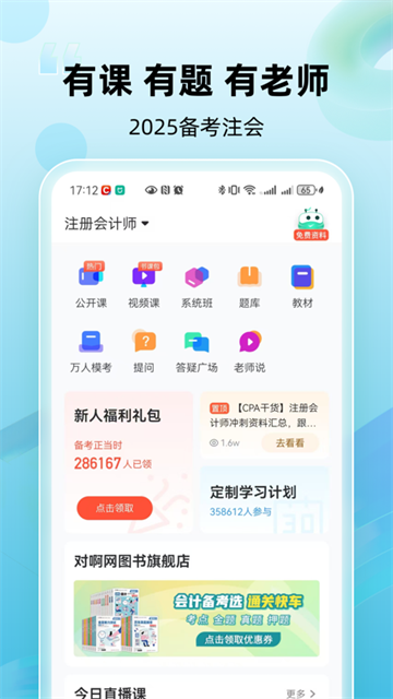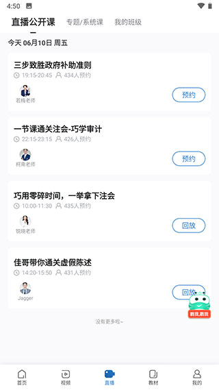 5、开设多科目注会直播公开课,全国考生可共同参与互动学习,课程安排覆盖每周七天。