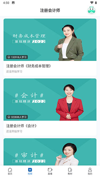 3、完整收录注册会计师考试六门科目视频课程资源,所有教学内容均可免费观看学习。