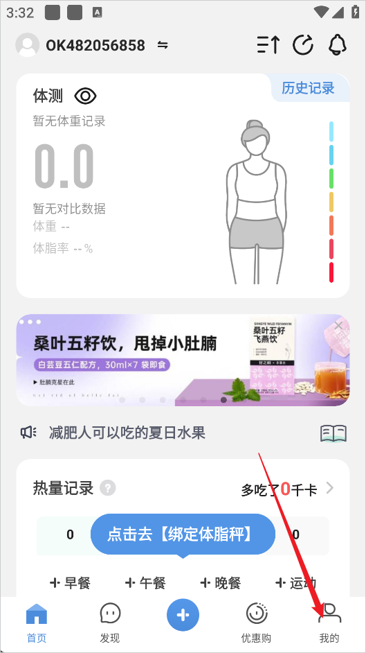 通过蓝牙连接体脂秤,利用BIA技术测量体重、BMI、脂肪率等8项身体数据。