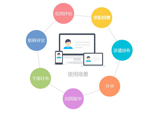 求职招聘、派遣接收、升学(考研、专升本)、出国留学、干部任免、职称评定、信用评估等。