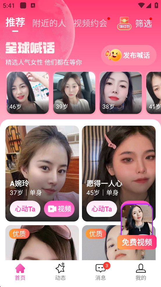 心恋app下载是一款超级不错的社交软件,这里带给你的社交体验是非凡一般的,这里可以让你高效的找到互相喜欢的人,并在线实时互动聊天,支持文字、语音、图片以及视频语音通话等,让你可以在这里畅享高品质的聊天社交体验,而且这里的每一位用户的信息都是真实的,都是经过了严格的身份实名认证的,确保可以带给你诚信安全的交友聊天体验,而且还有很多新的社交玩法,带给你新的体验,感兴趣的话,不妨来下载试试吧。1、真人认证