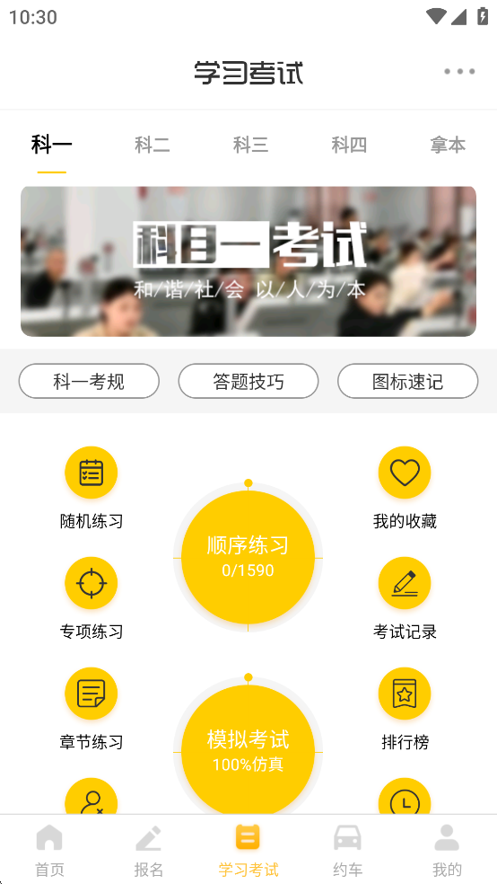 1. 驾驶知识一站式学习:科一科四题库、视频讲解与操作要点分模块呈现,帮助学员系统掌握理论与实操技巧。