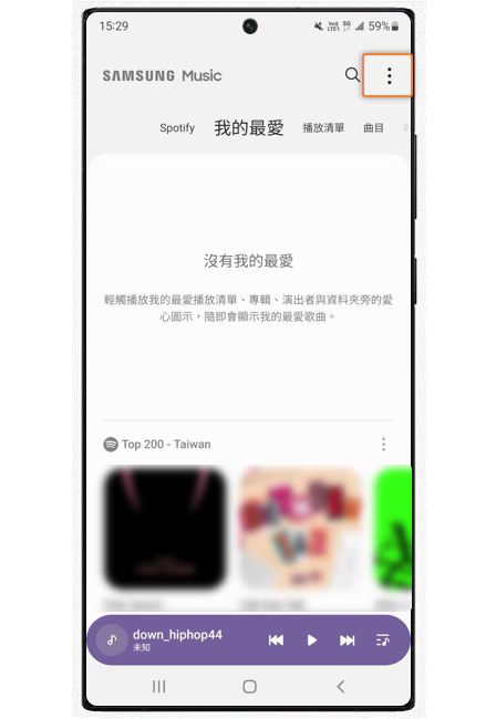 1. 开启三星音乐(Samsung Music)后,点击右上角更多