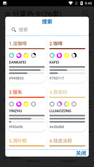 5、拥有清晰的颜色搭配标准信息,所有颜色旁边还展示了几种主要颜色的组成和分量;