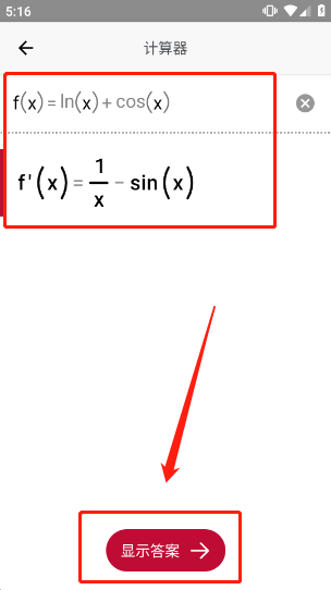 1、进入app我们可通过相机扫描目标题目,快速获得题目文本,下图所示扫描结果即为“f(x)=lnx+cosx”