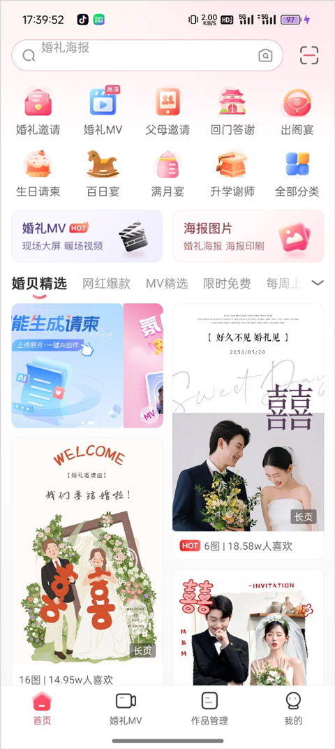 3. 海报选择:根据请柬的内容和类型,用户可以浏览并选择合适的海报内容,丰富请柬的视觉呈现。