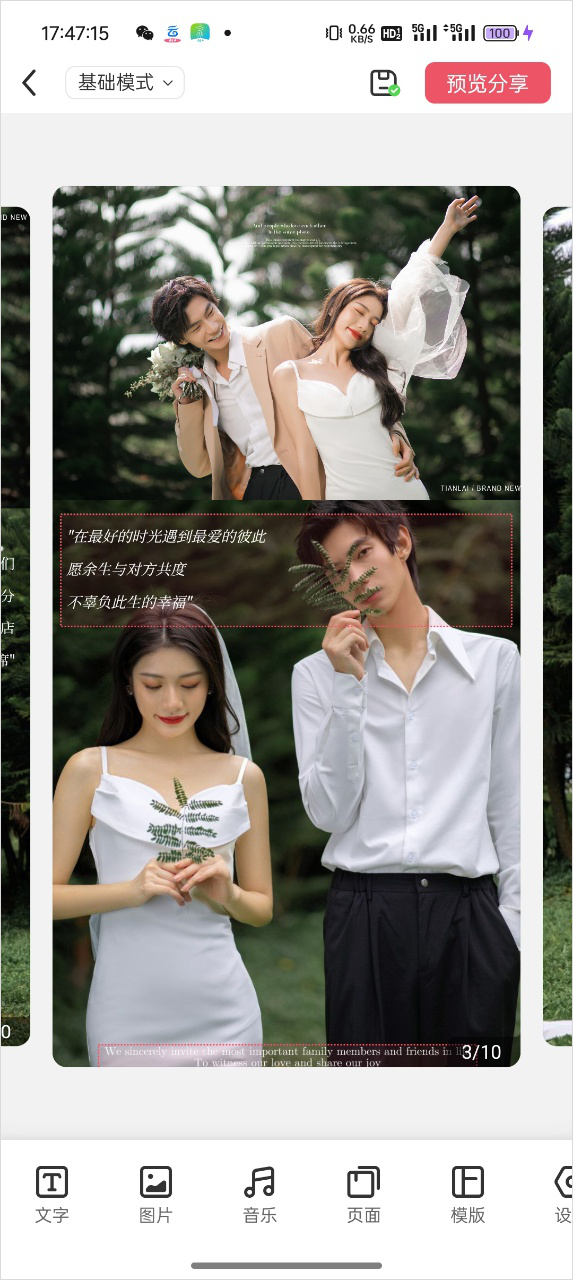 高端婚礼风:选轻奢/金色系模板+定制BGM,提升档次感。