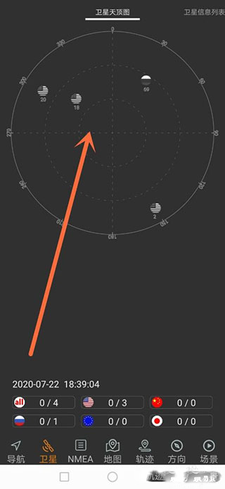 3、进入卫星界面后,在界面【停留几秒,等待卫星数量显示】。如下图所示