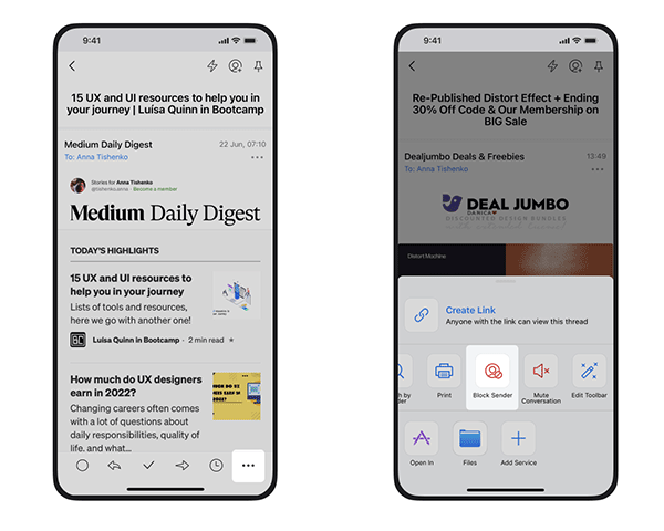4、如果您想屏蔽来自发件人域名的所有邮件,请选择阻止域名。例如,您如果在一封来自unwanted spam.com的邮件上选择了此选项,那么今后Spark会屏蔽所有来自spam.com的邮件。