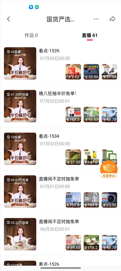 进入直播界面后,我们最先看见的是当前的直播内容,下面的几个是之后几天的直播预告,如果你对此感兴趣,可以点击开播提醒,再往下看,就能看见直播回放了,找到你想看的回放,点击进入即可,即可观看直播回放。