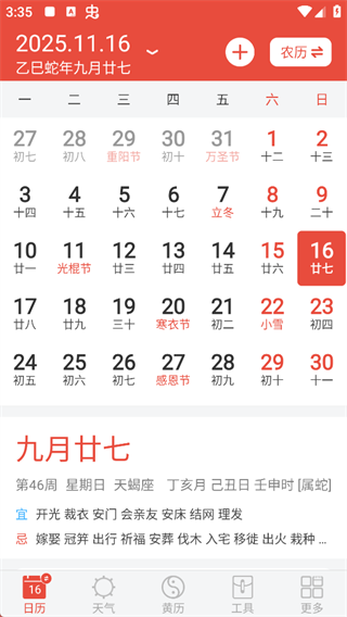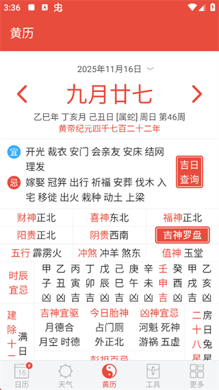 3. 万年历:集成老黄历、择日宜忌、干支节气,婚嫁搬家、开工动土查吉日,一页全览。