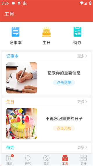 包含 记事本 、生日、待办功能,助力用户记录重要信息、管理生日和待办事项。