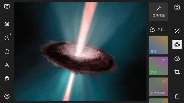 色彩:色彩类别下的调整工具主要是用来调整画面的色彩。包括色温、色调、自然饱和度和饱和度四个调整选项。