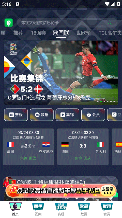 欧洲国家联赛、卡拉宝杯、国王杯、英冠等海量赛事免费看;购球票低至5折,每月再送观赛券可兑换英超等付费直播;免广告、多语解说、1080P高清全部任性享。