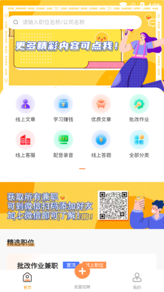 学生宝藏君安卓版下载是一款十分受欢迎的兼职神器,拥有它可以让你轻松找到你感兴趣兼职,这里所发布的兼职信息都是真实可靠的,让你可以自由选择自己喜欢的兼职来做。而且这里的兼职类型多种多样,不同领域的兼职都有,不论是教育的、科技的还是家政的,可以满足不同用户的兼职需求,而且该平台还为提供发展副业的机会,帮助你更好的投资理财,发展值得做的项目,提供收益。需要它的伙伴们,就来下载试试吧。