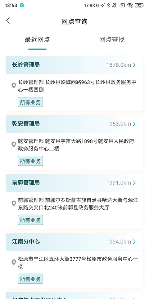 查询网点信息,选择最近网点业务办理;