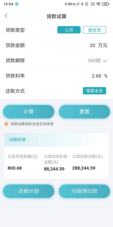 同步更新利率,贷款试算对比结果一目了然。