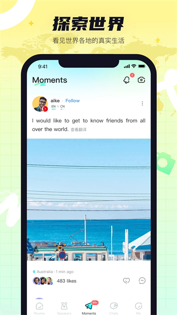 6、动态分享:全球用户在此分享真实生活点滴,每条动态内容生动丰富,促进文化交流与理解。