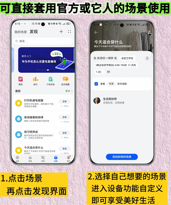 根据您的使用习惯,自由定制个性化生活场景,满足您的需求。