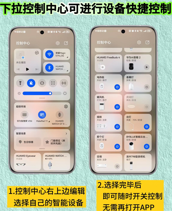 5、快捷控制,下拉手机控制中心可进行设备快捷控制