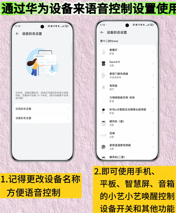 6、语音小艺控制,通过华为设备来语音控制设置使用家庭共享设备进行共同操作使用