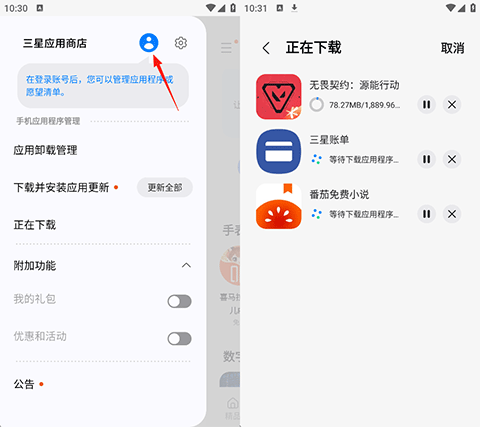 解决方法:尝试清除三星 应用商店app 的缓存或数据,或者重新安装应用程序。