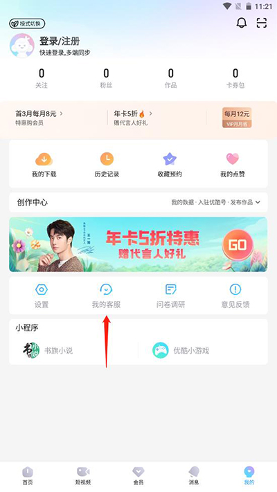 3、点击【我的】-【我的客服】页面上方您的用户名。