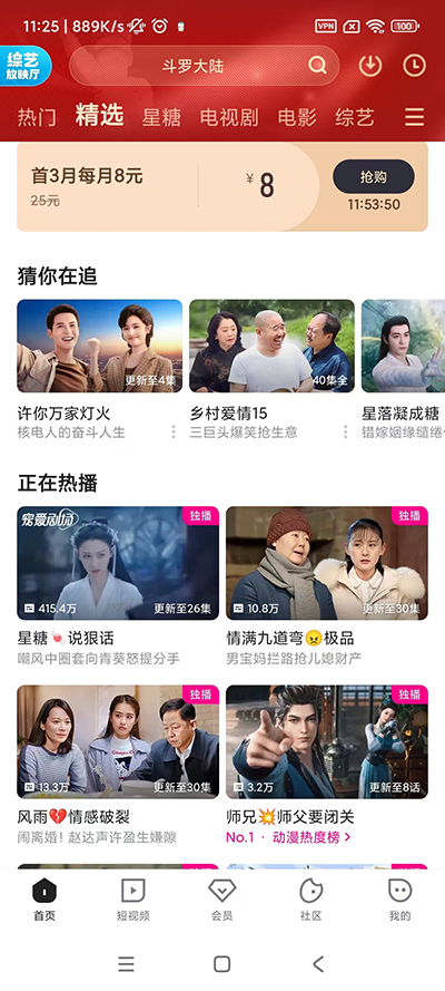 优酷播放器免费版是一款能够不同人群视频观看需求的视频播放器,软件用户海量优质的视频资源,用户可以打开它快速找到自己所感兴趣的视频内容进行观看,软件的界面简约直观,每一个版块都拥有精细的划分,包括了首页、短视频、社区、会员和我的,用户使用起来超级快捷好用,总能快速的找到自己所想看的视频,而且还可以离线缓存下载视频到手机上,从此不再是网络的限制,都可以看自己喜欢的视频。喜欢看视频的话,不妨来这里下载体验看看吧。