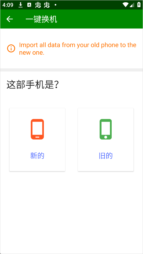 2、根据实际情况选择当前设备是“新手机”还是“旧手机”;