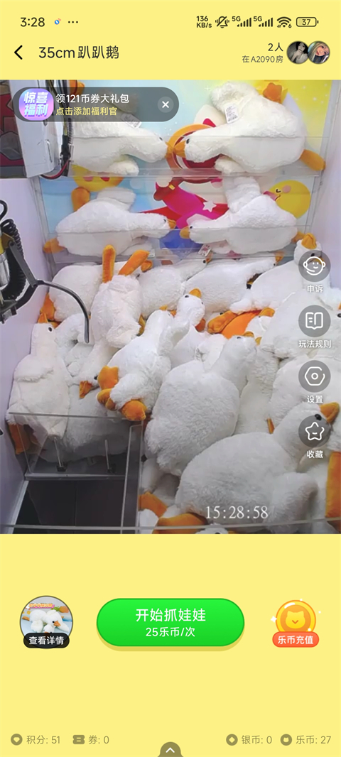 3、这里会显示多少乐币一次,点击开始抓娃娃