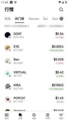 1、首页:可以在App端首页总览当下市场热门代币行情、易欧钱包ai活动与主流公链代币趋势。