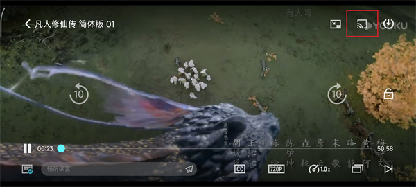 4、如果想 投屏 的话,点击屏幕上方带【信号图标】的即可开始投屏【确保手机与投屏设备链接同一WiFi】