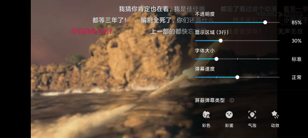 3、点击“弹”字图标右边带齿轮的“弹”字可以打开弹幕设置,在这里可以进行弹幕各种属性的调节