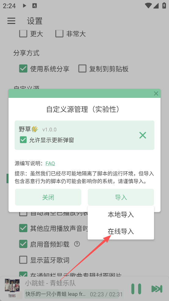 很多小伙伴在使用洛雪音乐时,经常会遇到音乐无法播放且换源失败的情况,这时你只需要去导入一个可以使用的音源即可,以下是具体的导入方法: