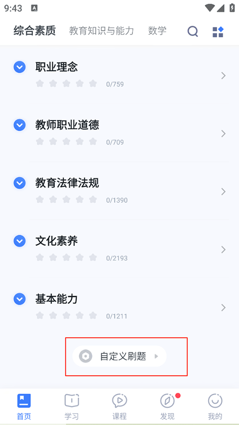 2、在自定义刷题页面设置出题模式、出题年份等。