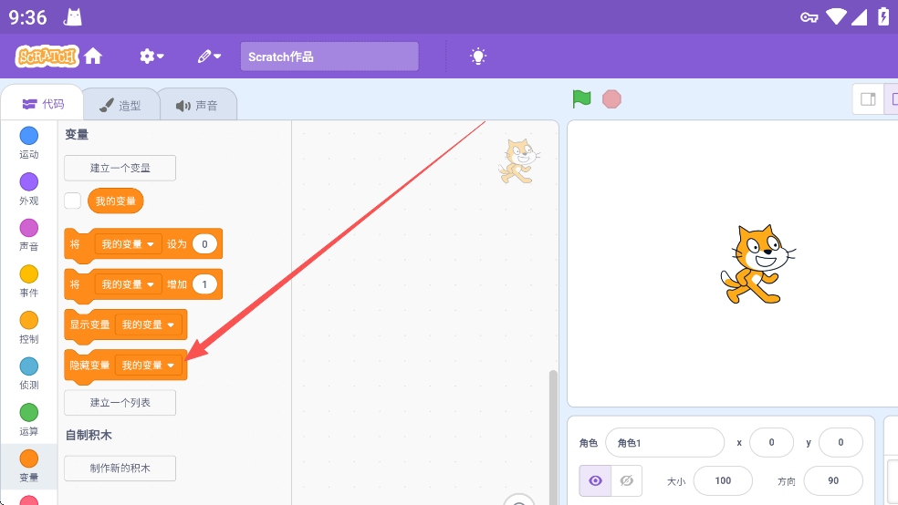 首先打开Scratch3.0,点击主界面右侧的【变量】按钮;