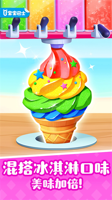2、游戏提供了非常多的场景,宝宝可以点击感兴趣的图标(如“可口冰淇淋”),将桌子上的食物吃掉就可以就解锁功能模块。