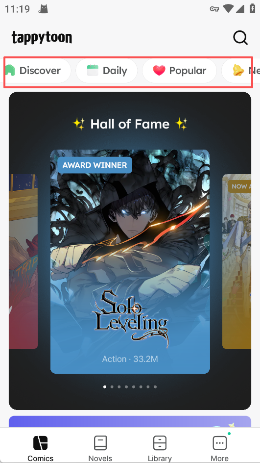 Tappytoon漫画下载是一款超级不错的小说漫画阅读软件,具有的资源是丰富的,让你可以在这里畅享非凡的小说漫画阅读体验,而且这里的题材风格各式各样,让你在这里畅享不错的漫画小说阅读体验。这里所收录的漫画资源都是正版的网站的,并为你提供高清的阅读模式,并且每天都会更新高质量的小说漫画资源,让你每天都有新的漫画可以看,关键还没有广告的干扰,喜欢看漫画小说的伙伴们,就不要错过了,赶紧来这里下载体验吧。