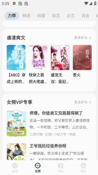 如《丧家犬》《大佬他拒绝追妻火葬场》《末世小废物被大佬圈养后》《人是张三,正在审核》《当反派渣A觉醒后和女主HE了》《ABO强取豪夺》《他那么野》《离婚后影帝天天拣垃圾》《穿成反派师尊后我五杀逆徒》《给玄学大佬敬茶》《清宫熹妃传》《御用小吃货》《快穿之反派终于黑化了》《我靠魅力在无限世界封神》《【星际】谁是猎手》《我在末世和大佬互飙演技》《楚小姐在恋综摆烂后》等热门女频作品。