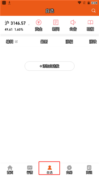 2、点击行情,里面提供了沪股深股港股等所有行情,用户可以一手掌握;