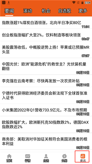 5、点击资讯,它会为用户提供最新市场咨询,让用户实时把握市场动态。