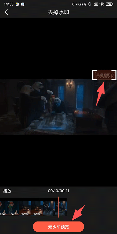 3、导入需要去除水印的视频,将选框移动到水印处,完成后点击下方【无水印预览】即可。(PS:此功能为付费功能)