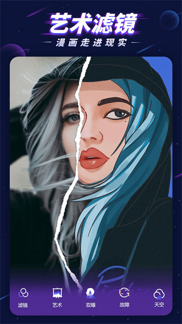 实用编辑工具:提供图片裁剪、调整角度、拉伸变形等功能,支持透明度、曝光度、对比度、饱和度、色温等十多项参数调节。此外,还有多种艺术字体、品质滤镜和超过300种可爱贴纸,让照片编辑更加精美。