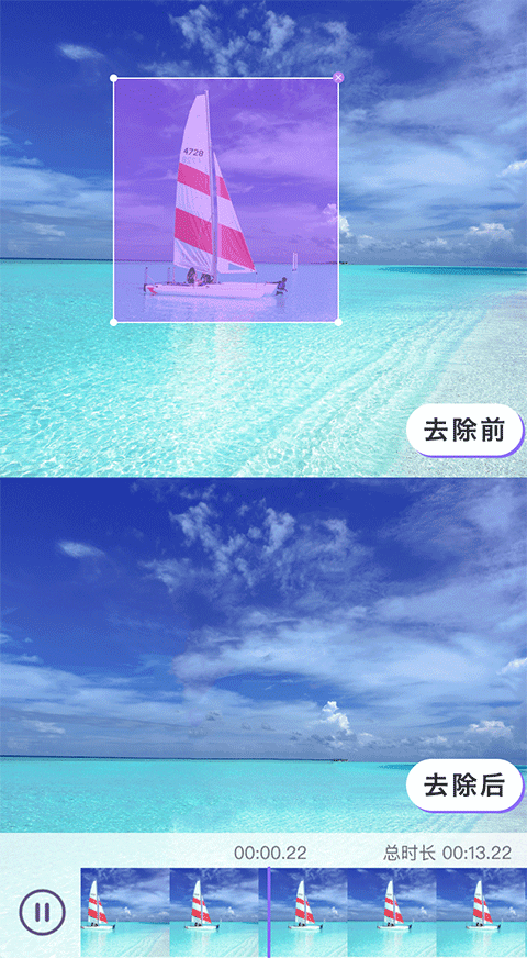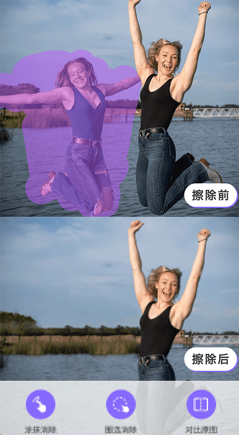 擦除笔大小可调,手指涂抹即可去除不必要的水印或印记,背景自动填充,看不出痕迹。